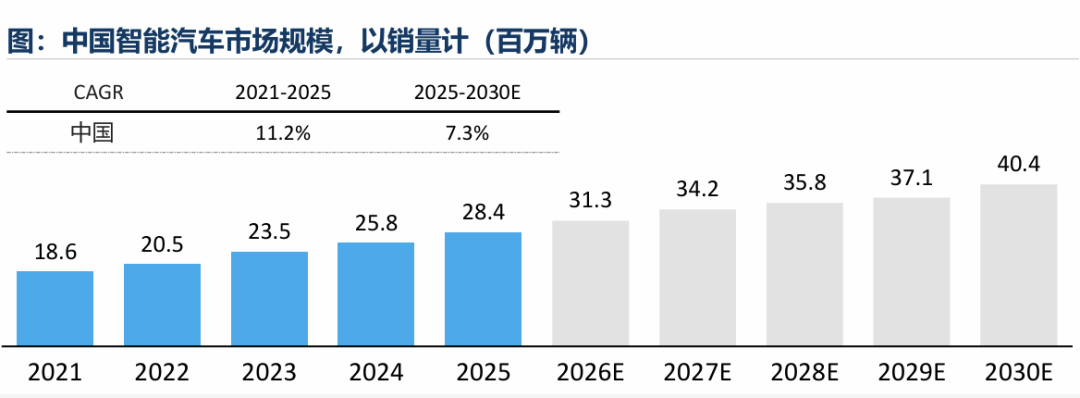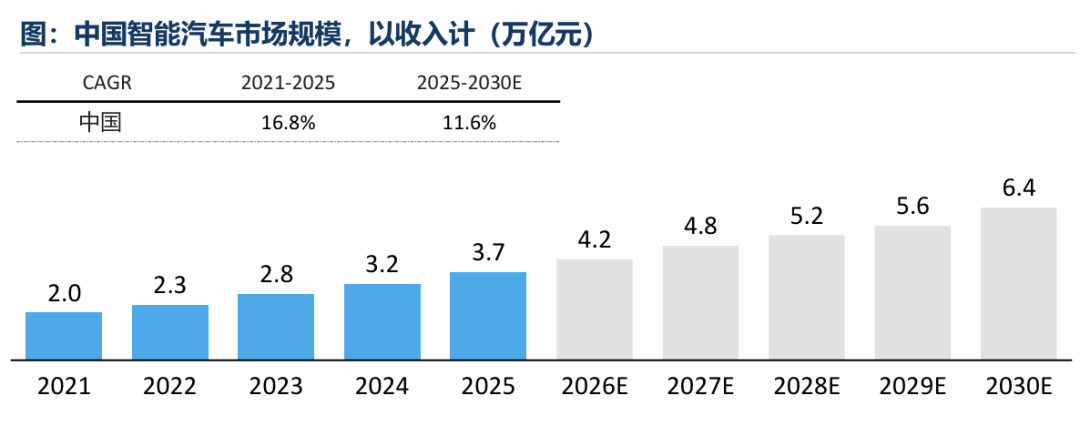 根据沙利文报告中数据,中国智能汽车市场规模呈现持续且上扬的增长趋势:2021年,中国智能汽车市场规模为2万亿元、销量达到1860万辆,预计到2030年,这两个数据将分别达到6.4万亿元和4040万辆。